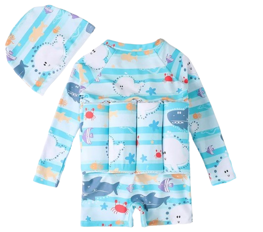 Jednoczęściowy strój kąpielowy dla dzieci niebieski z rekinem
