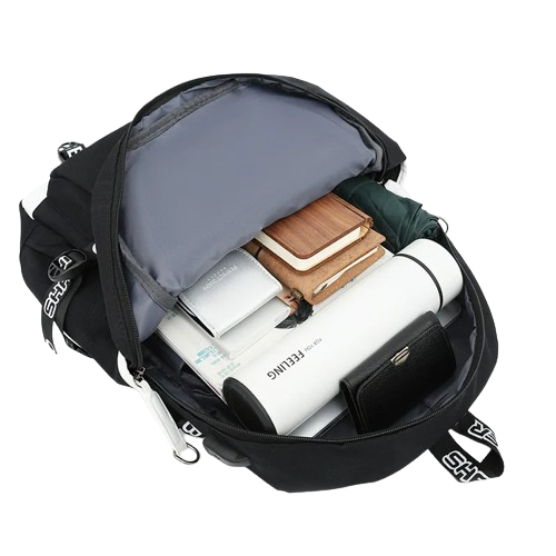 - Funkcjonalności: dwie duże kieszenie z przegrodami z przodu, przegrody na napoje po bokach, wbudowana kieszeń na laptopa 15 cali, dodatkowe mniejsze kieszenie we wnętrzu do organizacji mniejszych przyborów szkolnych
