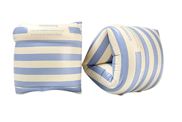 Rozmiarowe rękawki do nauki pływania dla dzieci ozdobione uroczym nadrukiem niebieskich pasków. Idealne dla małych początkujących pływaków, zapewniające im bezpieczeństwo i pewność podczas nauki. Wygodne w noszeniu i łatwe w zakładaniu, sprawią, że nauka pływania stanie się jeszcze przyjemniejsza.