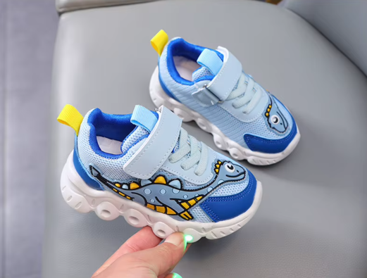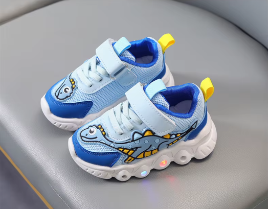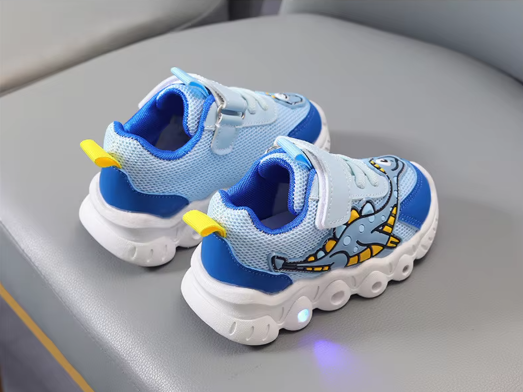 Świecące Buty Sportowe dla Dzieci z Dinozaurem – Sneakersy LED na Rzepy
