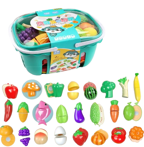 Zabawka dla dzieci zestaw kolorowych warzyw i owoców z zielonym koszykiem 30 sztuk