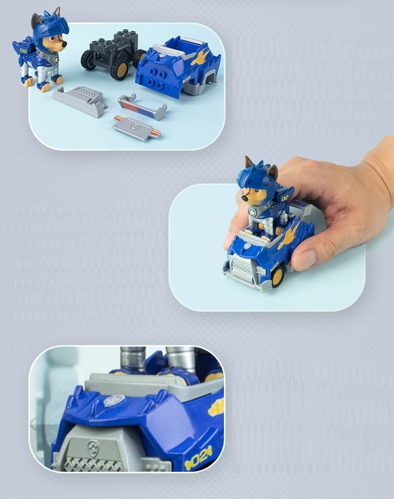 Dodatkowo w zestawie cztery figurki w pojazdach, które posiadają swój własny napęd, aby poruszać się do przodu.