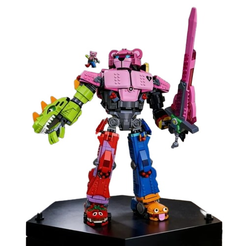 Imponujący Zestaw klocków Mech Commander to rozbudowany model dużego robota bojowego, inspirowany dowódcą mechów znanym z popularnej gry Fortnite. Kolorowa, masywna konstrukcja z charakterystycznymi elementami uzbrojenia i detalami sprawia, że model natychmiast przyciąga uwagę i doskonale wpisuje się w klimat świata gier akcji.