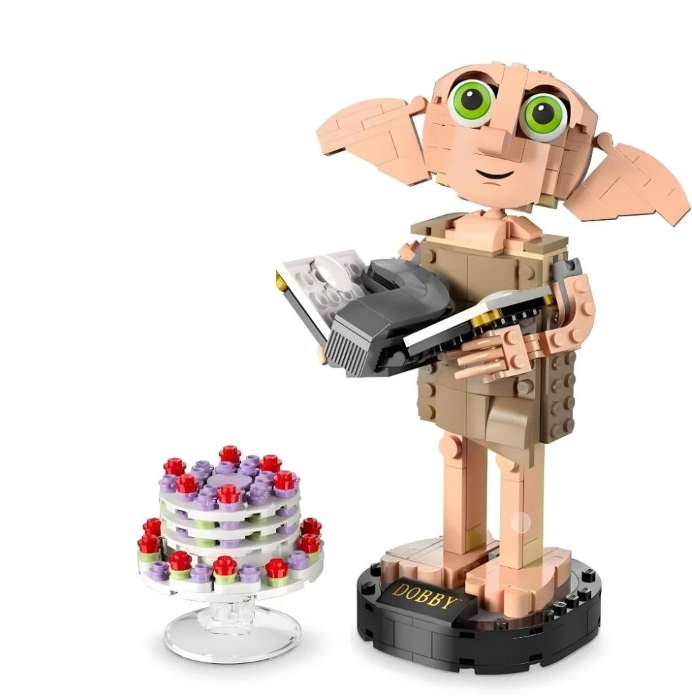 Zestaw klocków Skrzat Młodego Czarodzieja 403 elementy to szczegółowa figurka inspirowana kultową postacią znaną z historii o młodym adepcie magii. Model oddaje charakterystyczny wygląd skrzata – duże oczy, szerokie uszy, skromny strój oraz przyjazny wyraz twarzy. Figurka posiada ruchome dłonie, dzięki czemu może trzymać dołączone akcesoria.
